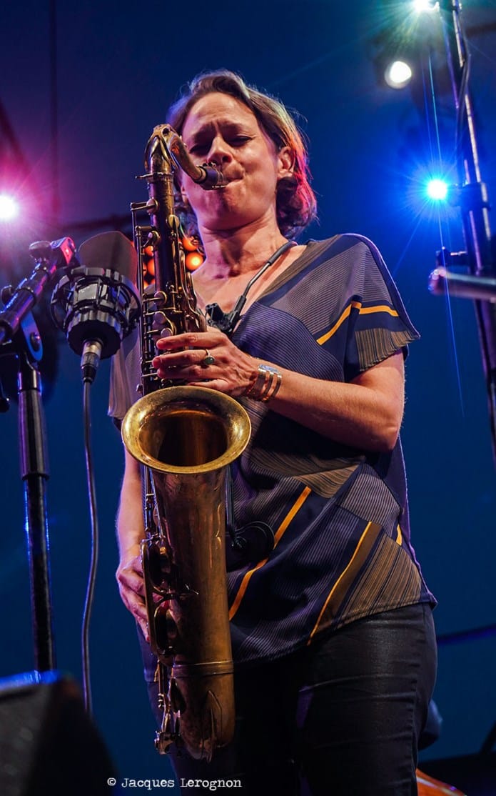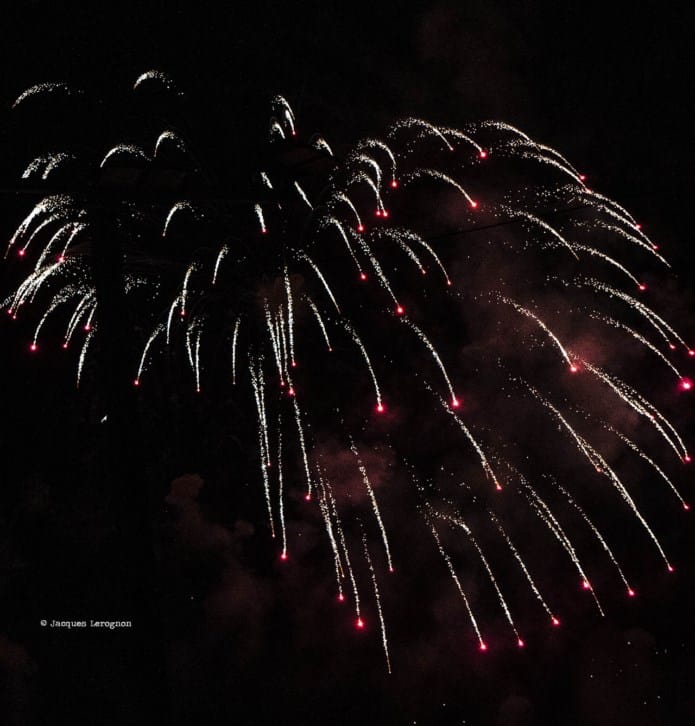 Sophie Alour est une leadeure généreuse, elle nous offre quelques belles parties de ténor (quel son chaleureux! ) ou de flûte mais elle laisse aussi beaucoup de place à ses musiciens. Un magnifique solo de piano dans « Un ciel plus grand » ou le double solo de batterie de Atef et Kontomanou rivalisent de puissance, de subtilité et d’inventivité. Un court rappel après une sortie à peine esquissée, un trop court concert mais c’est l’heure du fameux feu d’artifice. Et il est de toute beauté. Le ciel et la mer rougeoient, bleuissent, les fusées montent et éclatent et lentement les tribunes se vident.