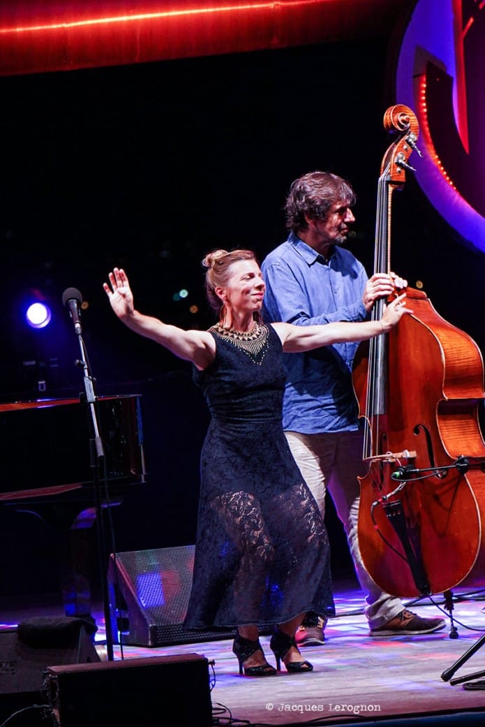 C’est donc le trio du jeune pianiste israélien et new-yorkais Guy Mintus qui ouvre la soirée. Il est accompagné par Oren Hardy à la basse et Yonatan Rosen à la batterie. Un jazz d’une grande fraîcheur où se mêle Gershwin, Chopin, des compositions personnelles et des chants traditionnels. Un bon swing, une grande aisance au piano et de magnifique chaussettes rouges. En toute honnête on préféra les morceaux instrumentaux qui laisse plus de place à son style pianistique.