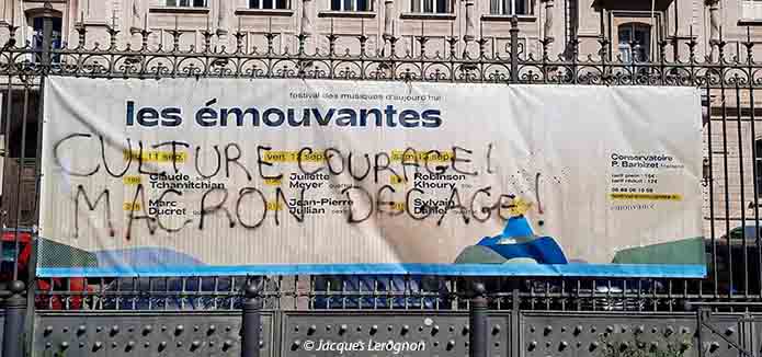 C’est le calicot du programme qui accueille l’amateur de jazz à l’entrée du conservatoire mais cette année celui-ci est orné d’un tag des plus explicite auquel on ne peut qu’adhérer.