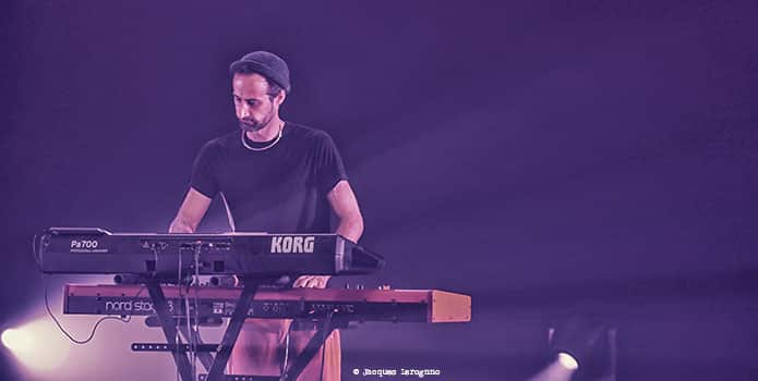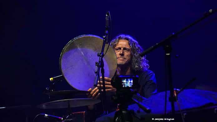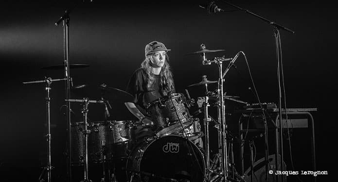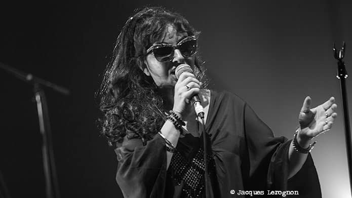 Après un court entracte pendant lequel les techniciens du théâtre s’affairent avec virtuosité et efficacité, le quartet de Natacha Atlas prend place. Au fond, derrière sa batterie, la très jeune Isabella Matthews et derrière ses claviers Elie Dufour (il est aussi le pianiste et compositeur de l’excellent trio EYM). Au-devant de la scène, le violoniste Samy Bishai et au centre Natacha Atlas cachée derrière des lunettes de soleil. Ambiance plus électrique, plus électro. On change aussi de langue en passant du kabyle à l’arabe. C’est Samy Bishai qui fait le Monsieur Loyal, en présentant les morceaux et en nous expliquant ce qu’ils racontent en français avec parfois des mots d’anglais ou d’arabe, langage qu’une bonne partie du public comprend. On a la chance d’avoir en avant-première les nouvelles compositions du prochain album du groupe. Un projet nommé « Parallel Universe – Volume 1 », laissant présager un vol.2 ! Natacha Atlas a un chant assez posé qui contraste avec l’énergie du violon électrique dont Samy Bishai joue dans ses chorus avec une pédale wahwah et une belle distorsion de façon très hendrixienne ou psychédélique. S’il fait un beau travail avec ses synthés, on aurait tout de même bien aimé entendre Elie Dufour sur un piano acoustique qui mettrai bien en valeur la finesse et la créativité de son jeu. La belle surprise, la découverte de la soirée est la batteuse anglaise Isabella Matthews. A peine plus de 18 ans et déjà une technique et une force de frappe exceptionnelle. Le tom basse s’en souvient surement ! Une des grands moments du concert est la chanson qu’ils ont dédié à La Palestine et ses habitants. Résilience ! La chanteuse emprunte le kéfié du claviériste et le brandit en mode résistance !