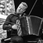 Deuxième soirée de cette 5e édition du Peillon Jazz Festival (PJF pour les amis). Mais la première au village, sur la place Arnulf, perchée à plus de 500 mètres. Un programme de choix qui va faire se succéder des groupes menés par trois générations de musiciens. Tout d’abord place aux jeunes avec le projet « Canto » du batteur Matthieu Chazarenc. À ses côtés le contrebassiste Christophe Wallemme, le trompettiste Nicolas Gardel et l’accordéoniste Laurent Derache. Le groupe joue des thèmes extraits de Canto III, troisième déclinaison discographique des aventures du quartet, mais on retrouvera aussi quelques compositions plus anciennes. Une musique colorée où se mêlent des influences jazz, musette mais aussi gasconnes (le sud-ouest d’où est originaire Matthieu Chazarenc – tout comme Nicolas Gardel d’ailleurs). Matthieu Chazarenc aime à varier son jeu, il frappe (ou caresse) ses toms et cymbales avec les mains, les baguettes ou les mailloches mais aussi avec des petits balais artisanaux fabriqués spécialement par son père. Le répertoire s’aventure aussi dans un swing vintage quand la trompette roule sous une rythmique basse-batterie enflammée avec, plus tard, un petit détour par l’Afrique Kamkwamba. Des musiques de tous les Suds. En rappel, un invité surprise, le saxophoniste Baptiste Herbin, à peine descendu du train. Ils nous offrent une très belle et émouvante interprétation de « La bohème », cet hymne de Charles Aznavour avec qui ils ont partagé la scène, il fut un temps. Un premier entracte qui permet d’aller se rafraichir et de déguster ce totem du PJF qu’est la socca cuite dans le vieux four municipal par le premier adjoint au maire.